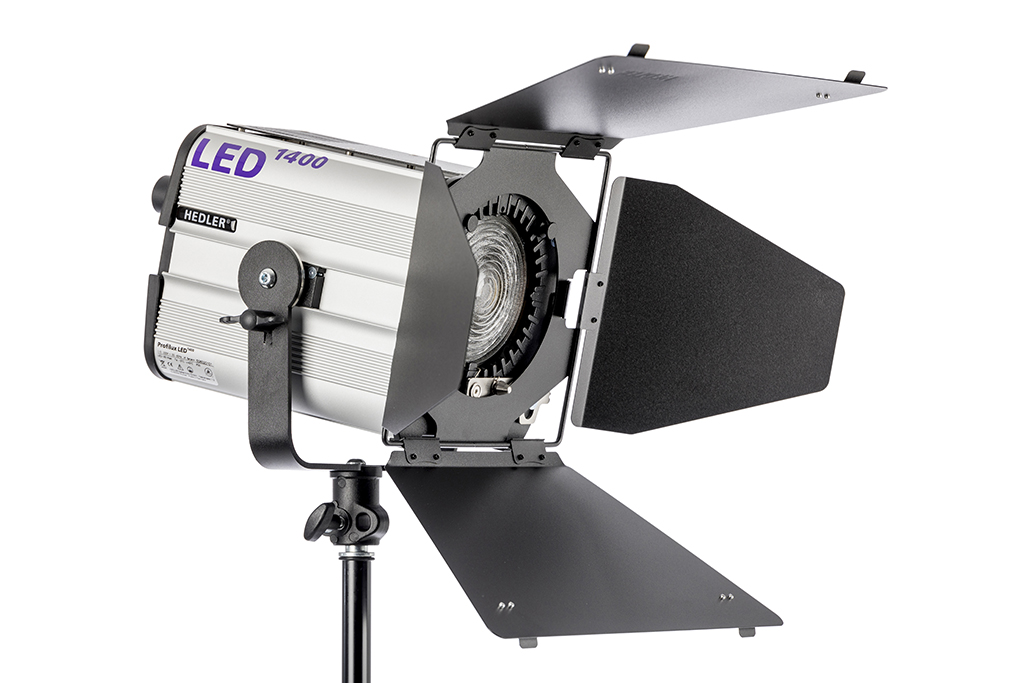 The 4-Leaf Barndoor 360° is a light modifier that allows you to illuminate areas of your choosing, or keep light from areas that you don't want illuminated. One or more of the four leaves can swing into the beam spread to add directional control and shape the output. The reflector is compatible with all Hedler lights except the C-Lights; which need a Speedring C for use.
